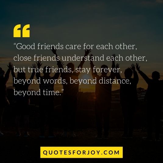 “Good friends care for each other, close friends understand each other, but true friends, stay forever, beyond words, beyond distance, beyond time.”