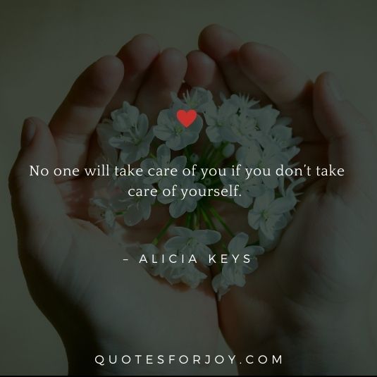 No one will take care of you if you don’t take care of yourself. – Alicia Keys