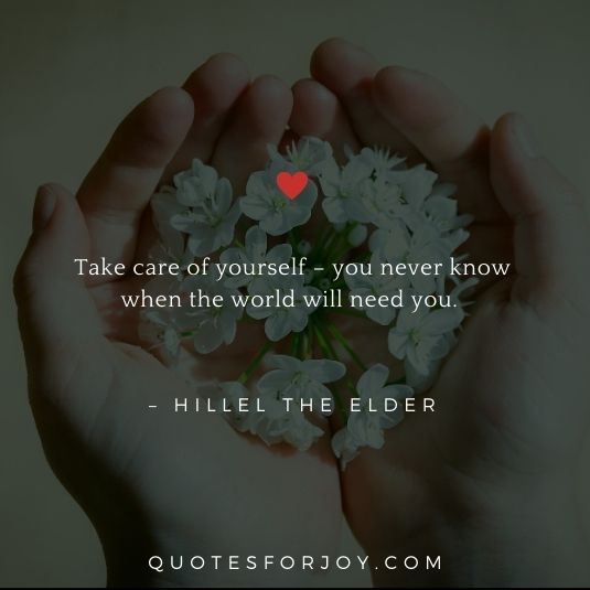 Take care of yourself – you never know when the world will need you. – Hillel the Elder