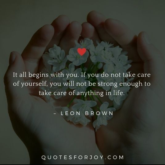 It all begins with you. If you do not take care of yourself, you will not be strong enough to take care of anything in life. – Leon Brown