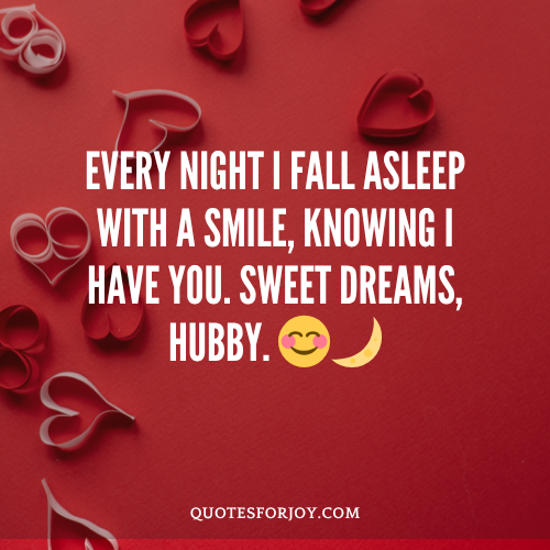 Every night I fall asleep with a smile, knowing I have you. Sweet dreams, hubby. 😊🌙