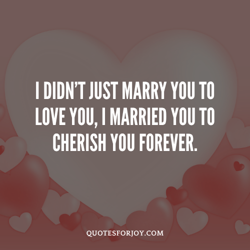 I didn’t just marry you to love you, I married you to cherish you forever.